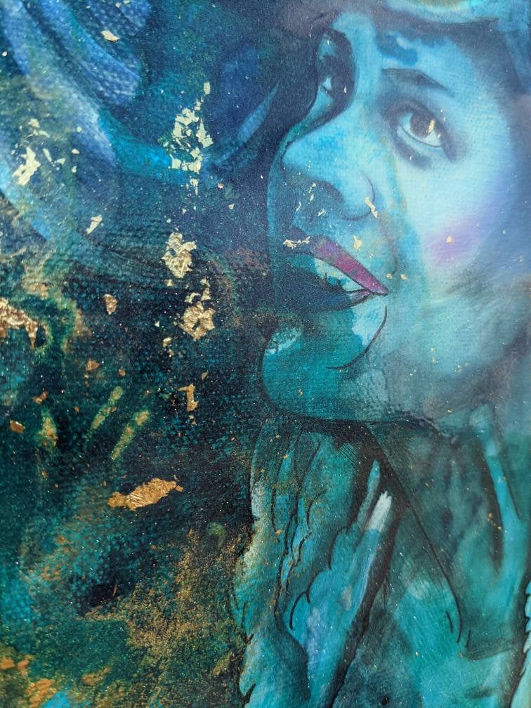 This is a quote from the original, and very dark tale of The Little Mermaid, by Hans Christian Anderson, this inspired the painting and the title of this piece. It is at this point in the story that the fate of the little mermaid is really set, she believes she can find an immortal soul, and it leads to tragedy.