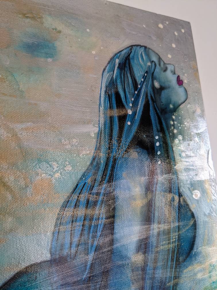 Watch a video of the surface of this piece; (27) "Longing for" painting part of the Little Mermaid collection - YouTube