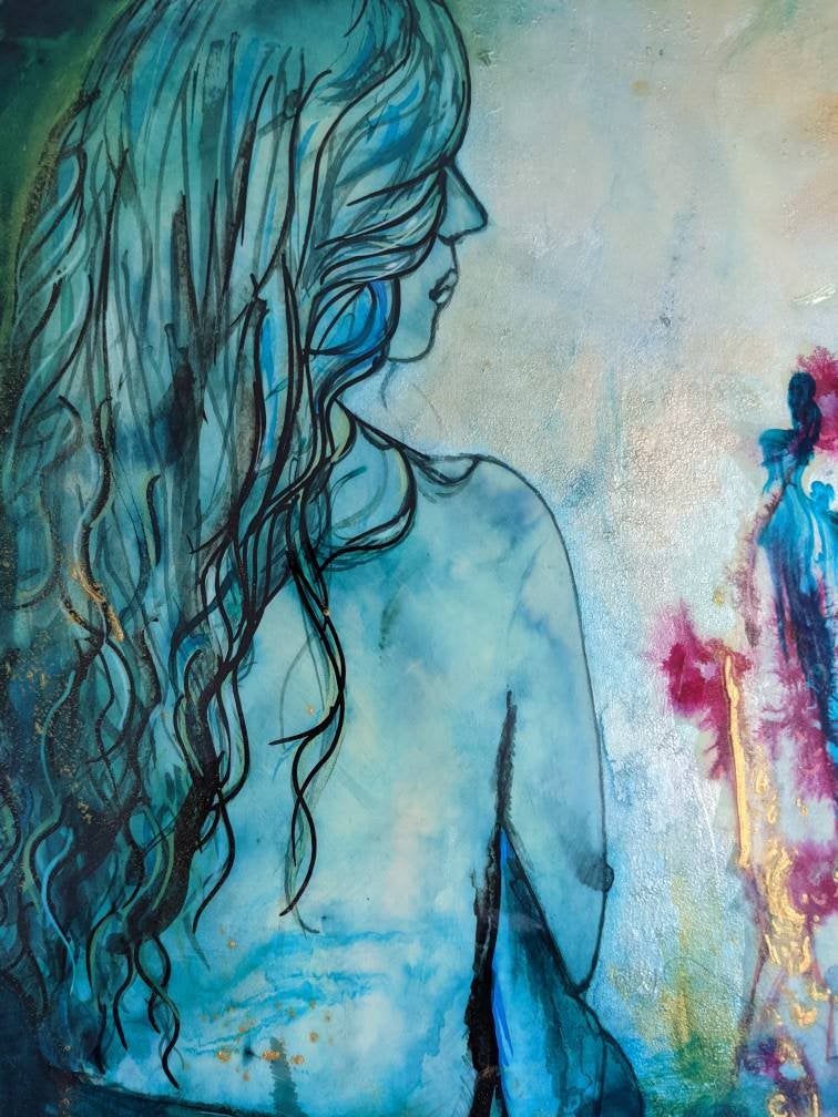 My work is ephemeral feminine expressionism, I am a painter, I work with all paints and mark making mediums, inks to oils. Currently exploring themes of Folklore and mythology, and inner beings.